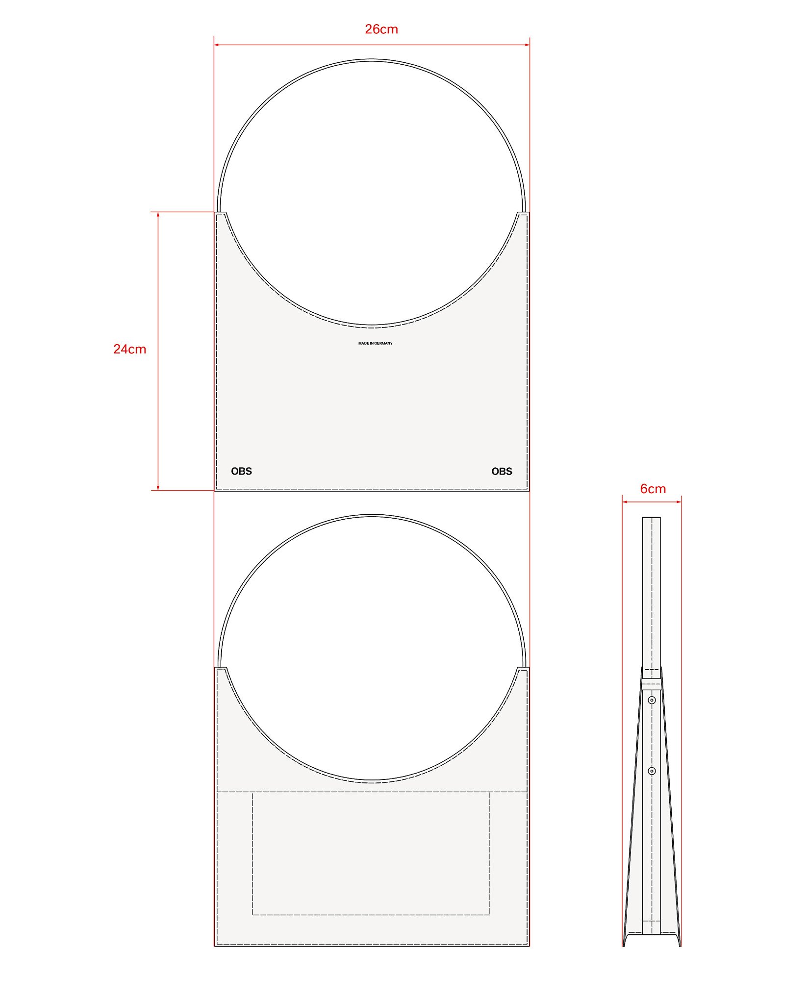 - Dimensions: H 24 cm x L 26 cm x W 6 cm